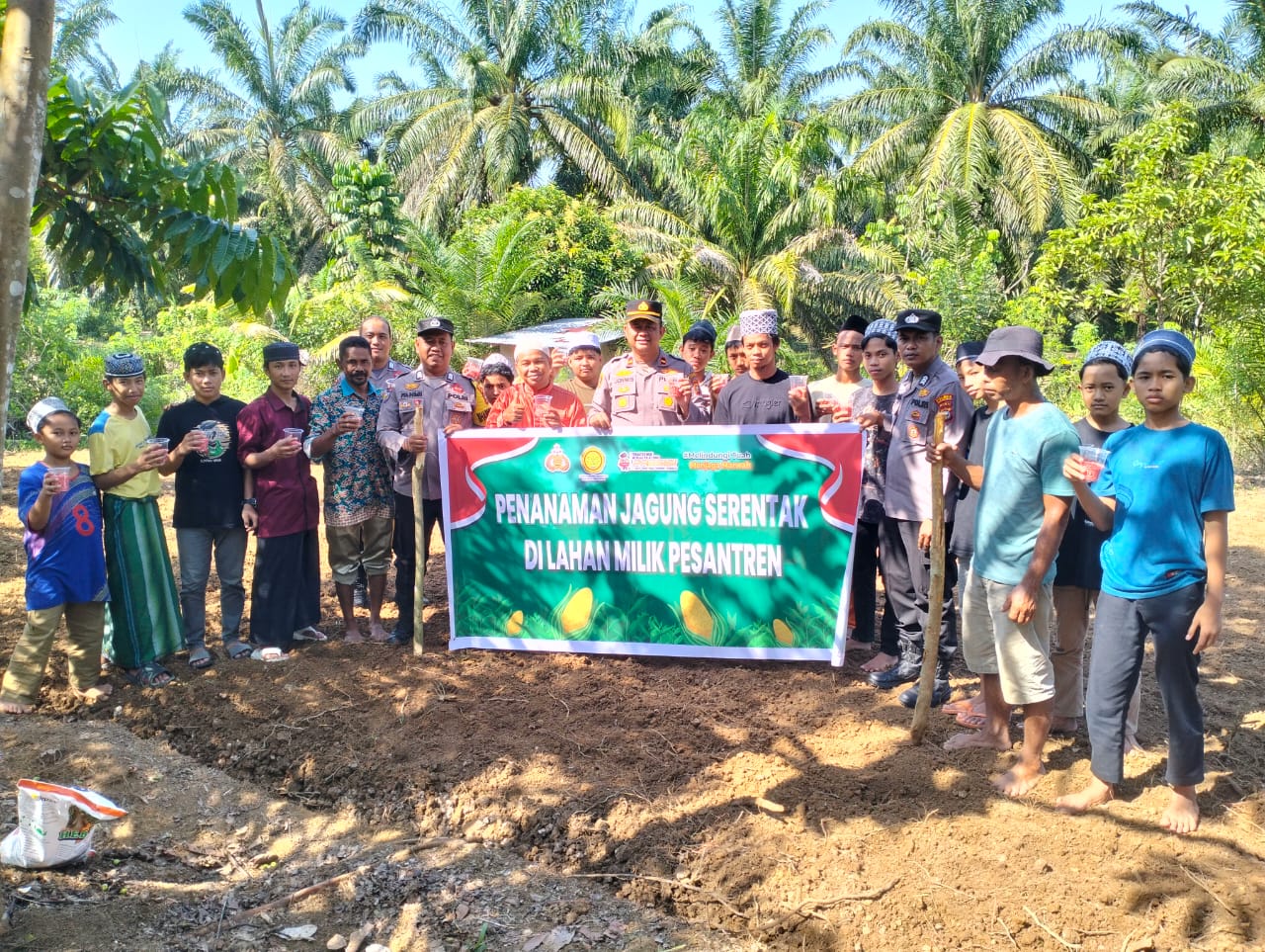 Sementara itu Kapolsek Kabun, AKP Effendi Lufino, S.H bersama personel juga turut melakukan penanaman jagung yang di gelar di Pondok Pesantren Darussalam Kabun seluas 1 Hektar.