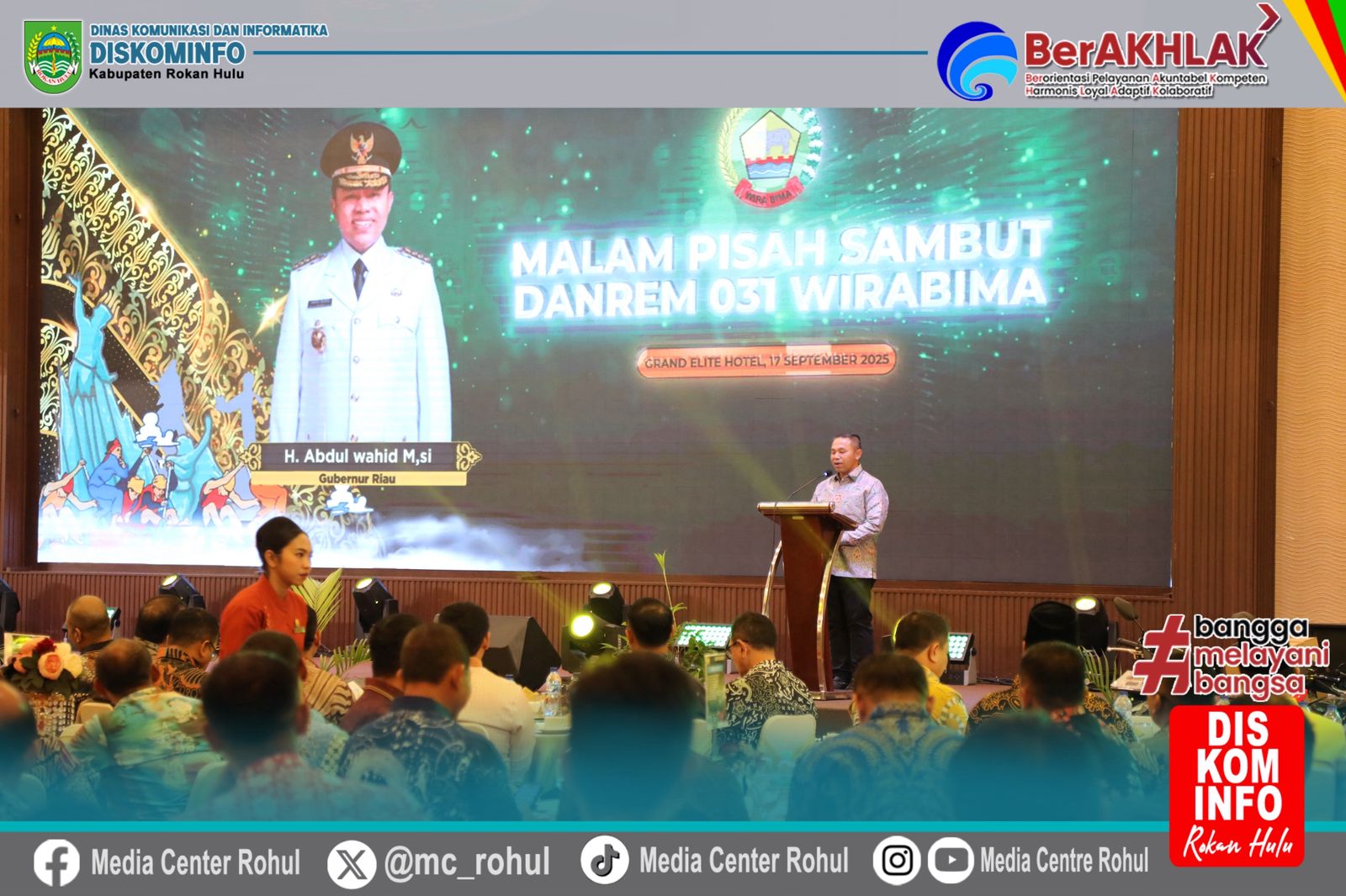 Takaran.id, Rohul – Bupati Rokan Hulu Anton, S.T., M.M. hadiri malam Pisah-sambut Danrem 031/Wirabima dari Brigjen TNI Sugiyono kepada Kolonel Inf Jarot Suprihanto di Grand Elite Hotel Pekanbaru, Rabu (17/09/2025).